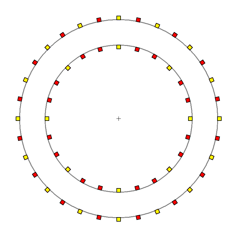 4 Pylonen auf dem Außenkreis in Flucht zum Mittelpunkt anordnen